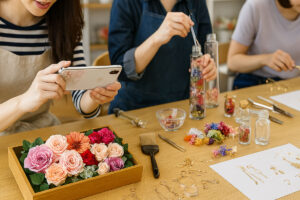 ハーバリウム制作、プリザーブドフラワーアレンジメント、アクセサリー販売等、様々な活動を行っています。